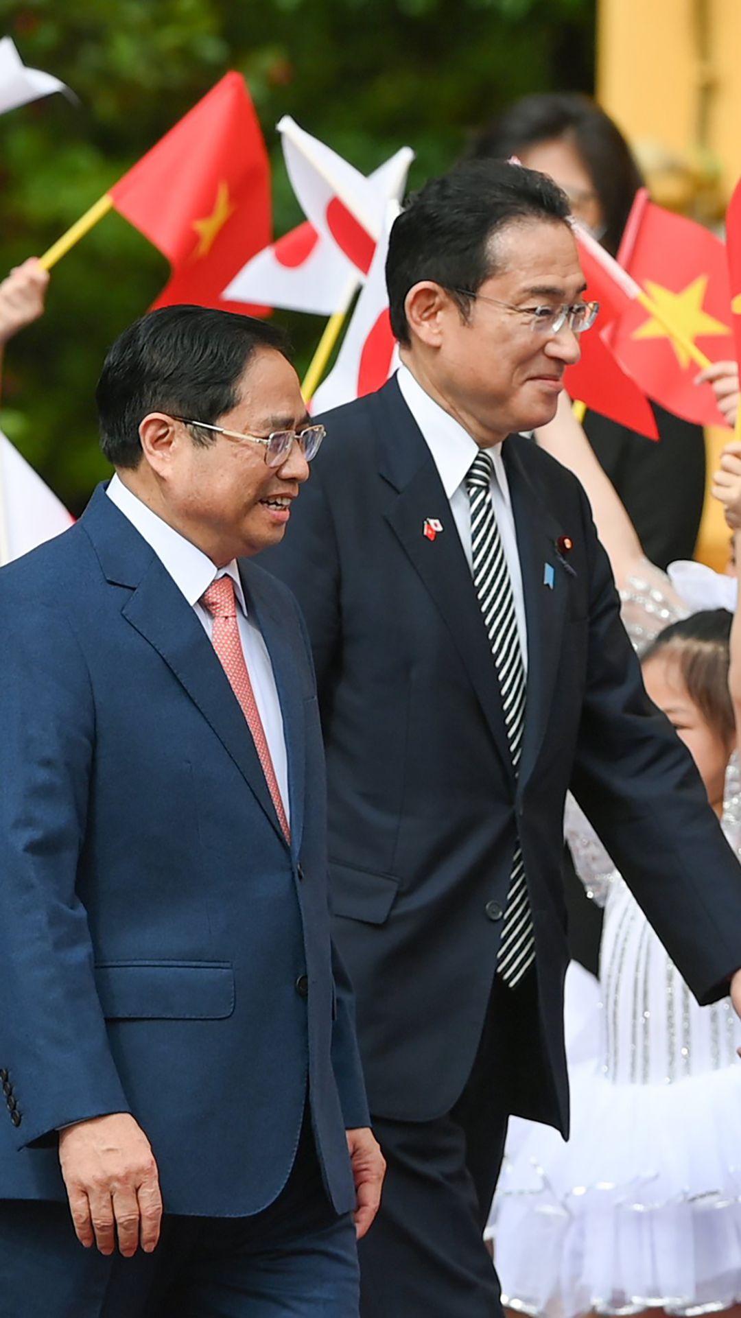 Thủ tướng Nhật Bản Kishida Fumio đón Thủ tướng Phạm Minh Chính thăm chính thức Nhật Bản vào tháng 11/2021. (Ảnh: Baoquocte.vn)