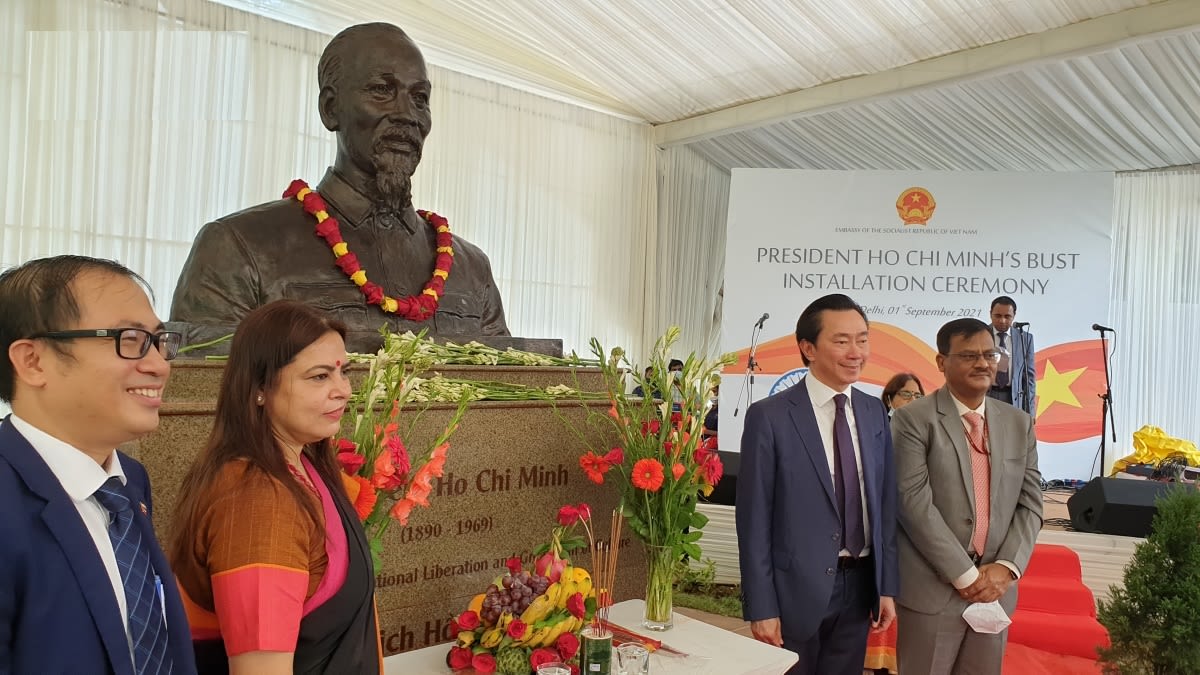 Ngày 1/9, Đại sứ quán Việt Nam tại Ấn Độ phối hợp Bộ Ngoại giao Ấn Độ và chính quyền Thủ đô New Delhi trang trọng tổ chức Lễ đặt tượng Chủ tịch Hồ Chí Minh tại thành phố New Delhi. (Ảnh: VOV)