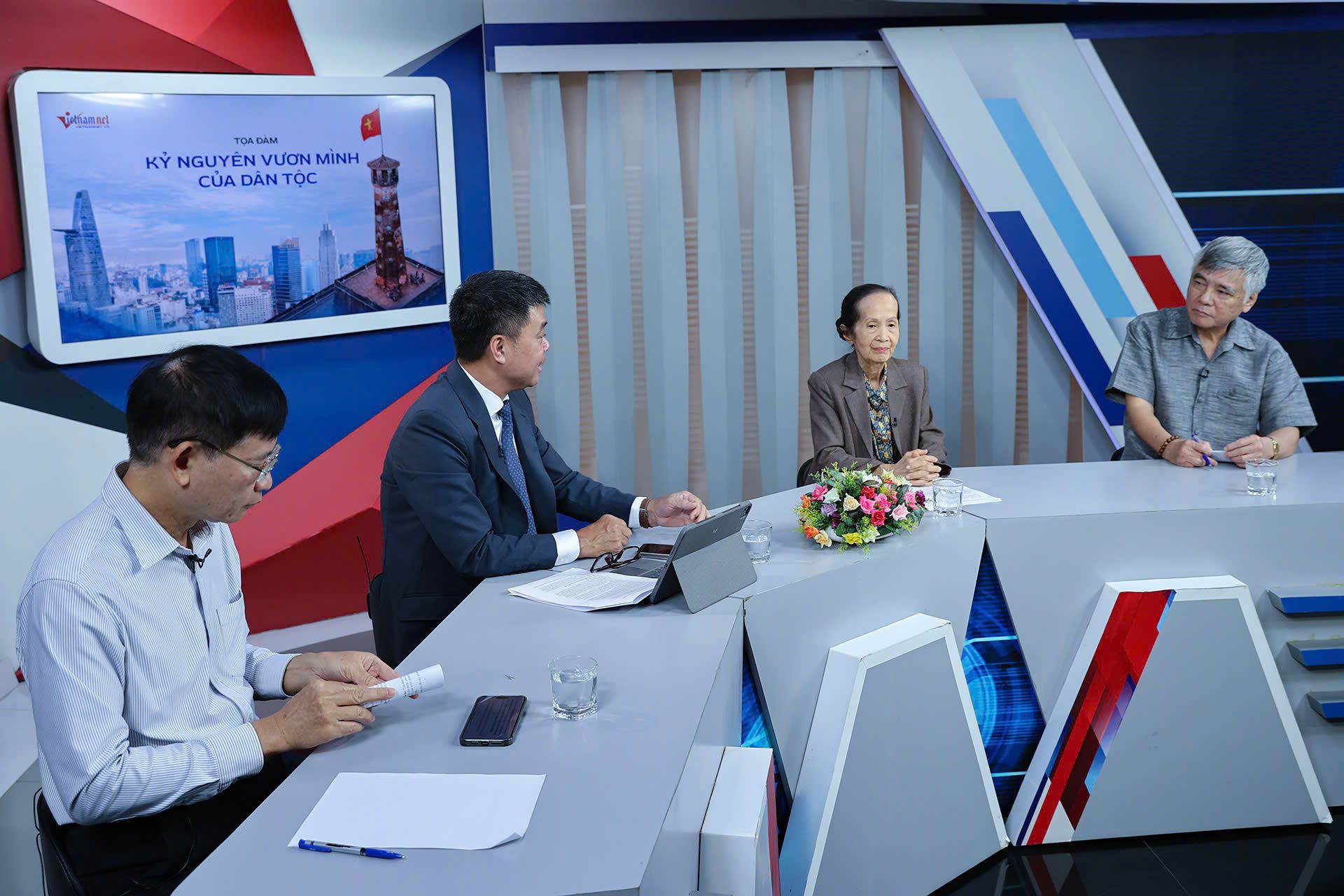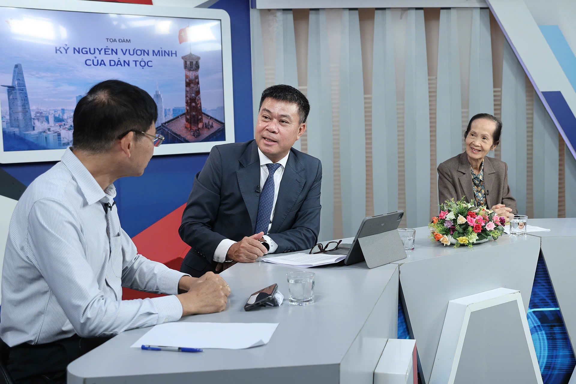 Tổng Biên tập VietNamNet Nguyễn Văn Bá và các khách mời tại buổi tọa đàm trực tuyến "Kỷ nguyên vươn mình của dân tộc" tháng 11/2024.