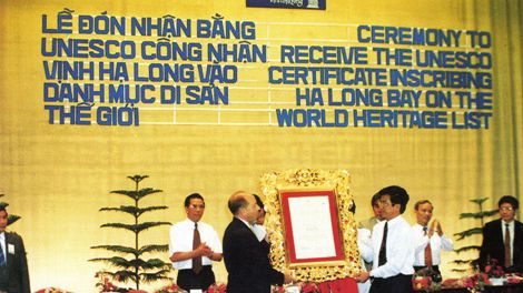 Lễ đón bằng công nhận Di sản Thiên nhiên thế giới vịnh Hạ Long lần thứ nhất.