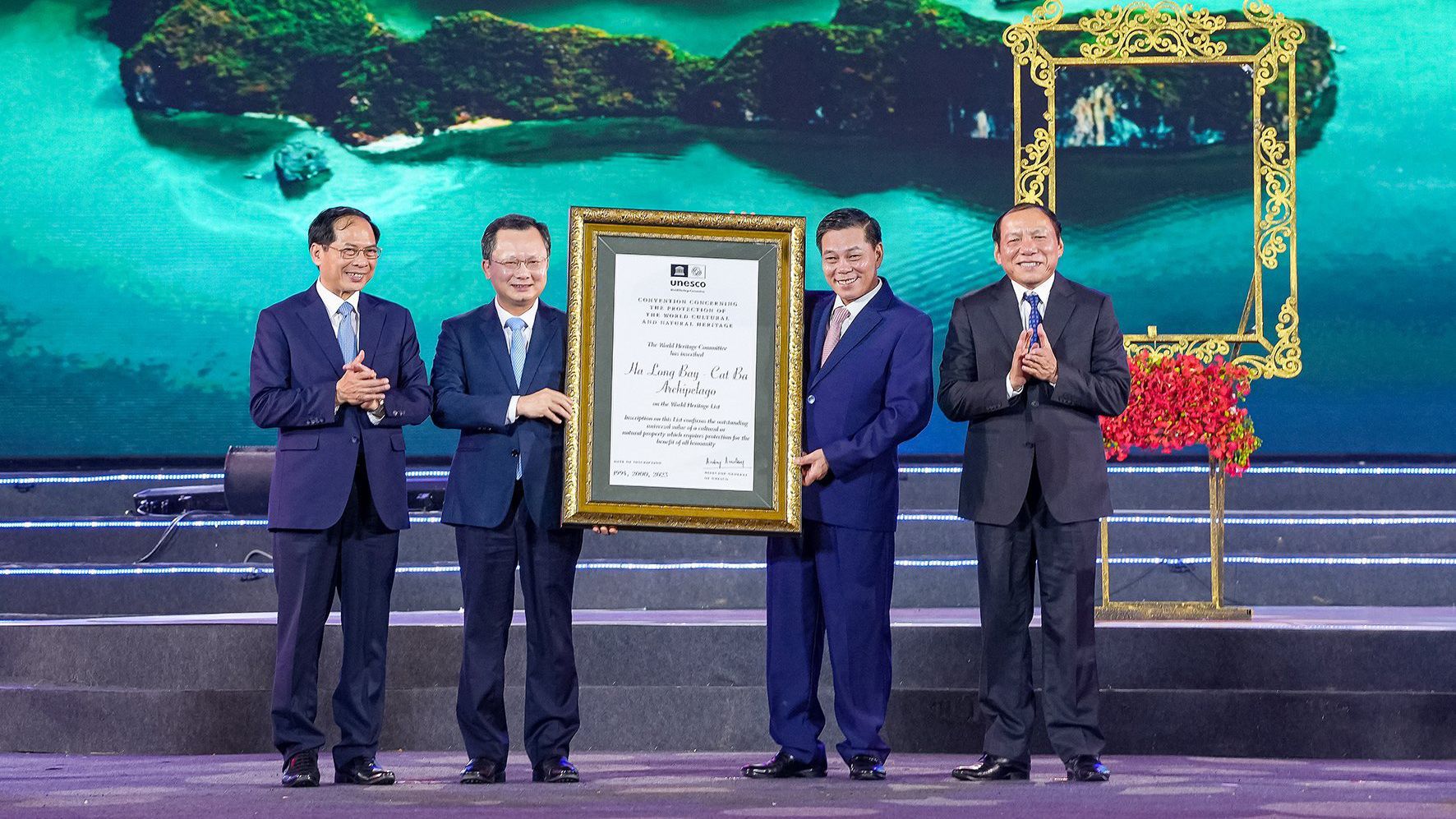 Kỳ họp lần thứ 37, Liên hiệp Khoa học Địa chất quốc tế (IUGS) đã trao tặng danh hiệu Di sản địa chất quốc tế cho Di sản vịnh Hạ Long - quần đảo Cát Bà.