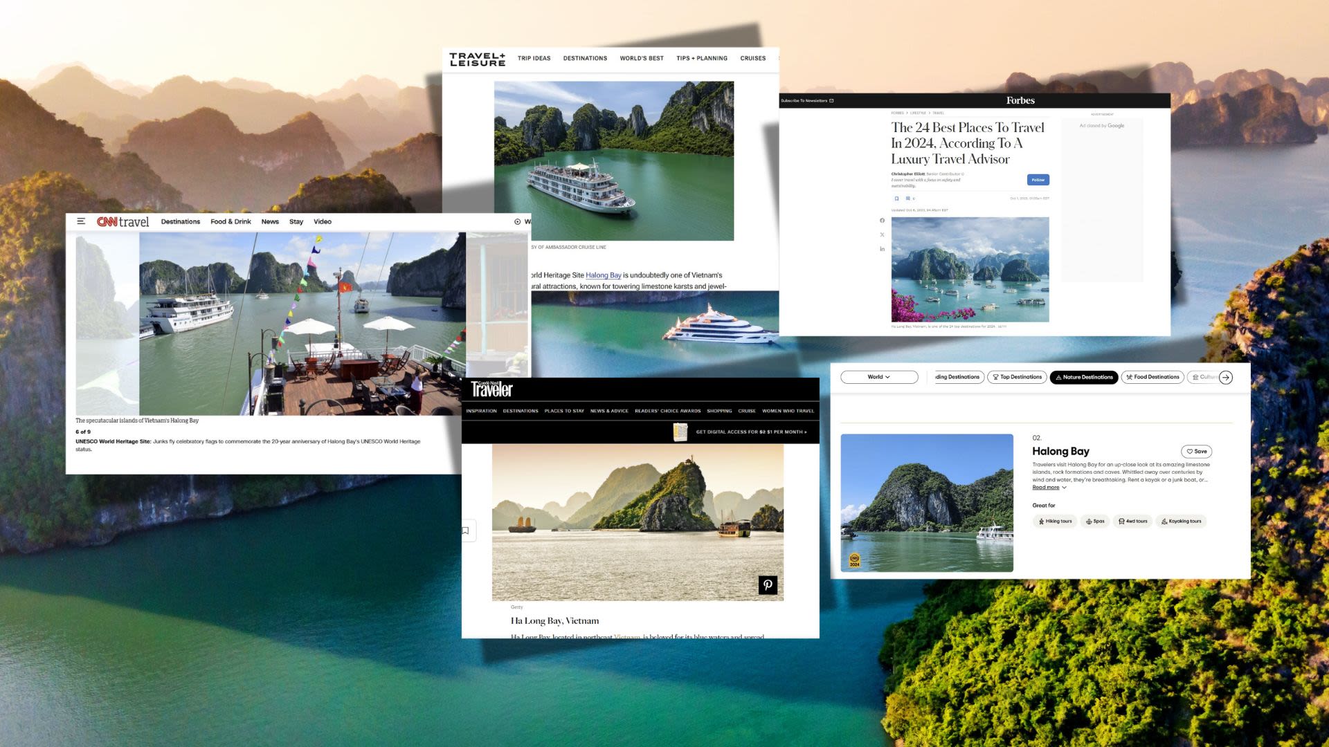 * Tháng 5/2024: Vịnh Hạ Long trong 55 điểm đến đẹp nhất thế giới do Travel+Leisure bình chọn.