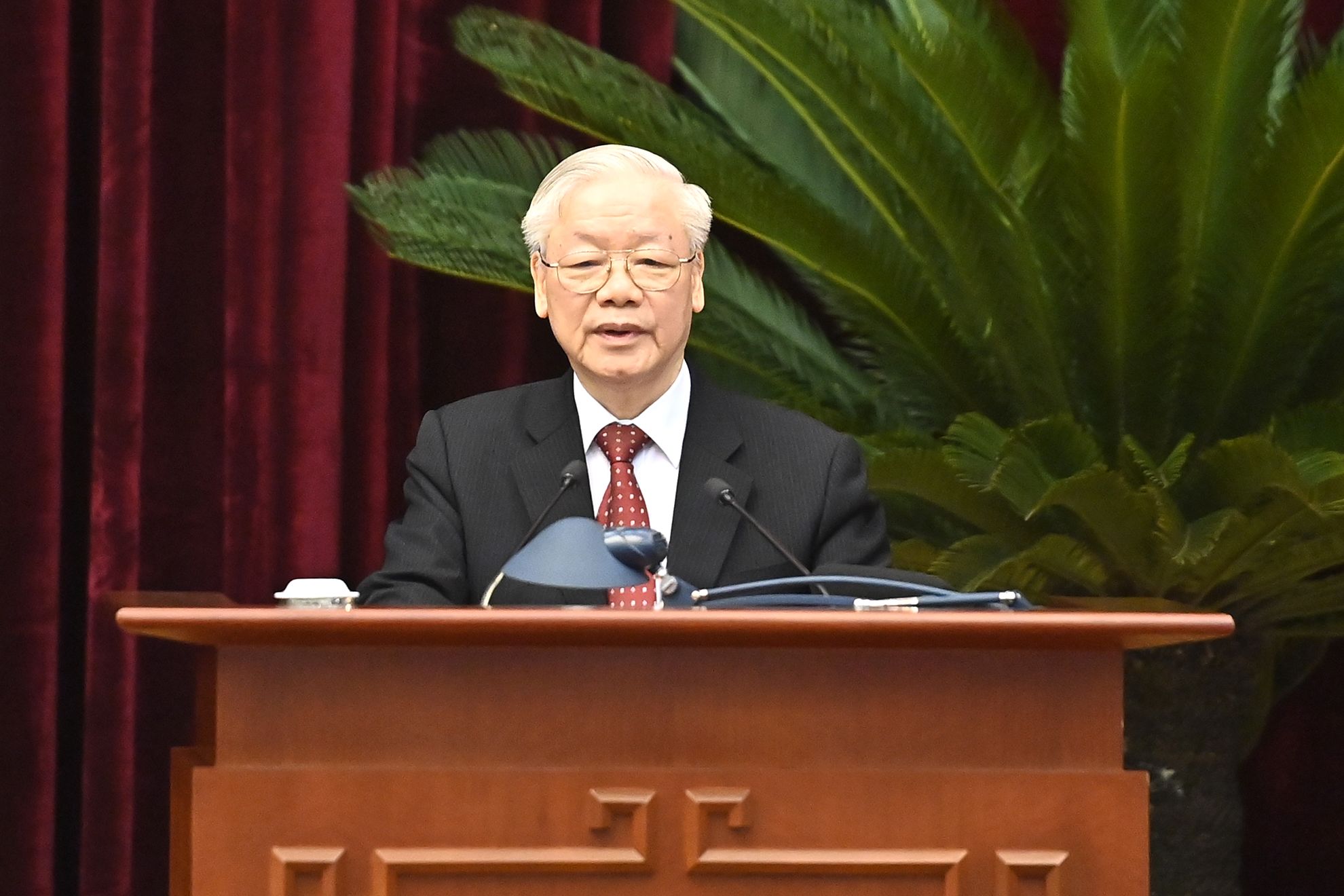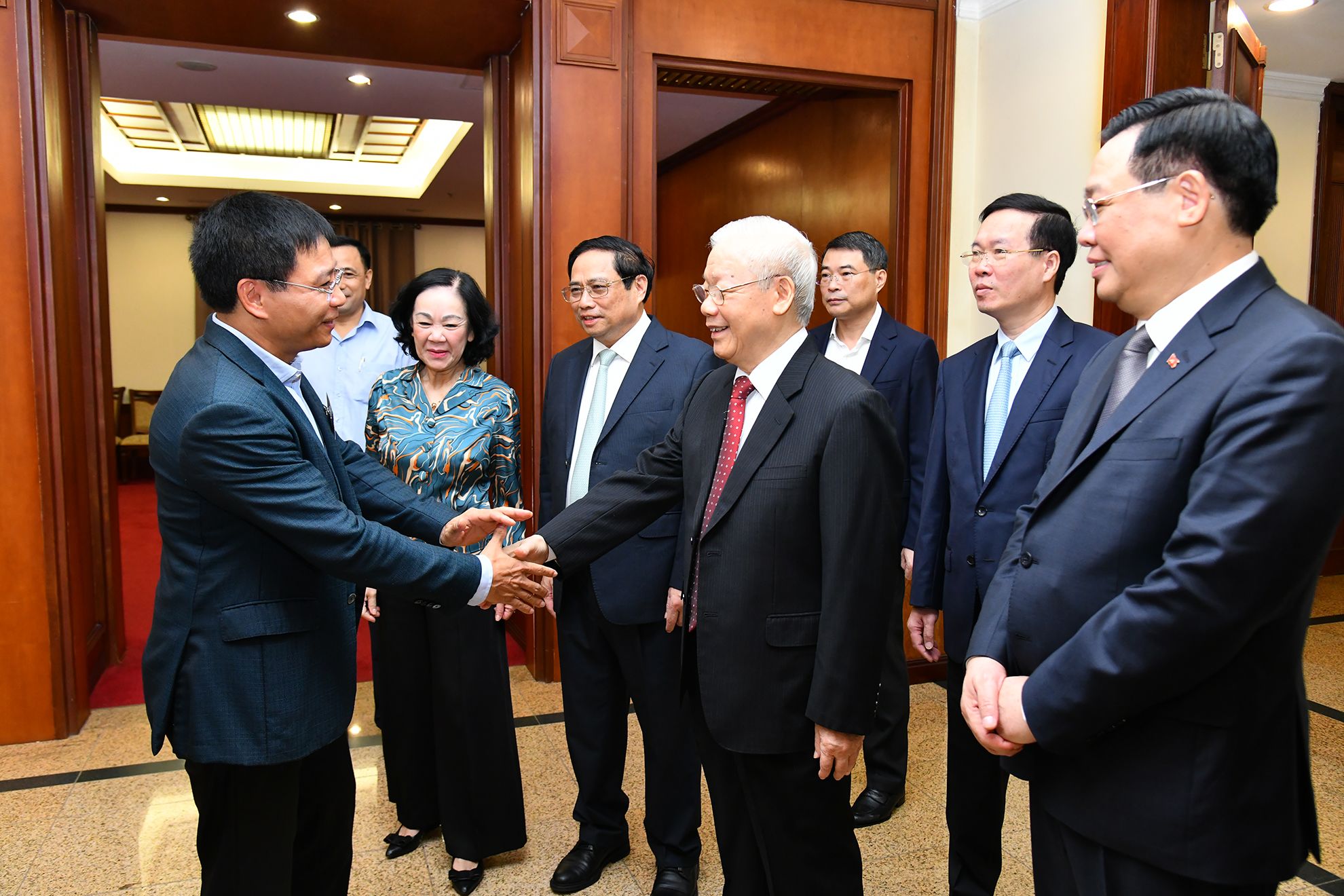 Tổng Bí thư Nguyễn Phú Trọng và các đồng chí lãnh đạo Đảng, Nhà nước và các đại biểu hội nghị.