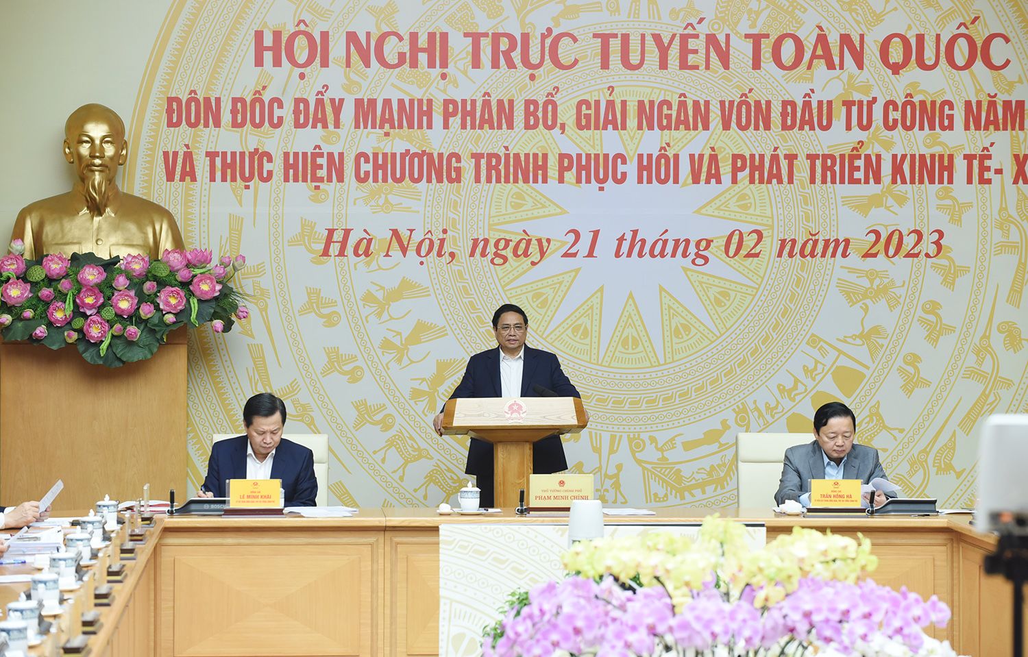 Le Premier ministre Pham Minh Chinh préside une conférence visant à promouvoir le décaissement des capitaux d'investissement publics en 2023. Photo : Trân Hai.