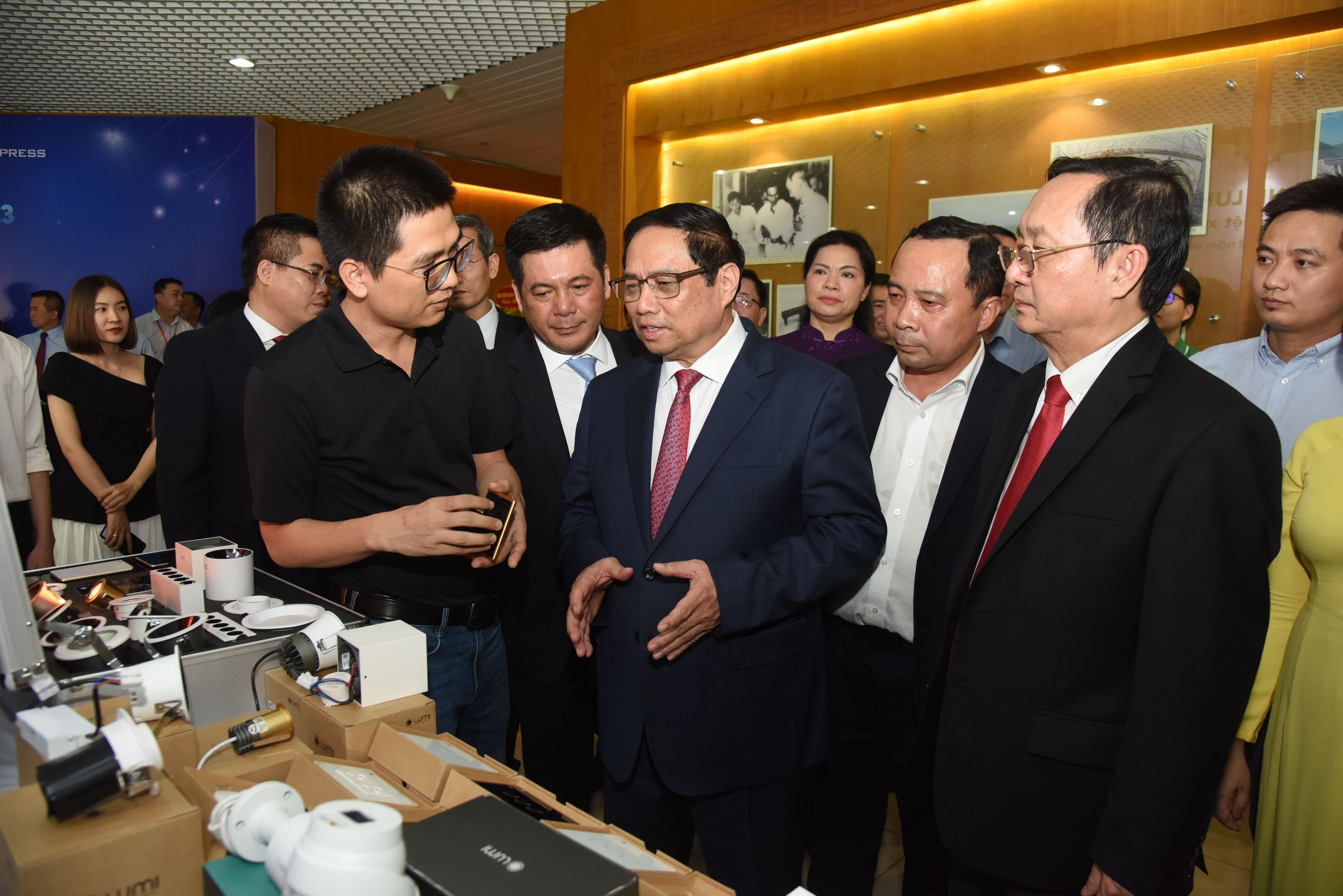 Le Premier ministre Pham Minh Chinh visite un stand présentant plusieurs produits scientifiques et technologiques appliqués dans le cadre de la Journée vietnamienne de la science et de la technologie (le 18 mai). Photo : Trân Hai.