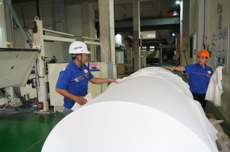 Sản xuất "sạch hơn", giảm phát thải tại Công ty TNHH giấy Xuân Mai, Khu công nghiệp Hiệp Phước. Ảnh: THẾ ANH