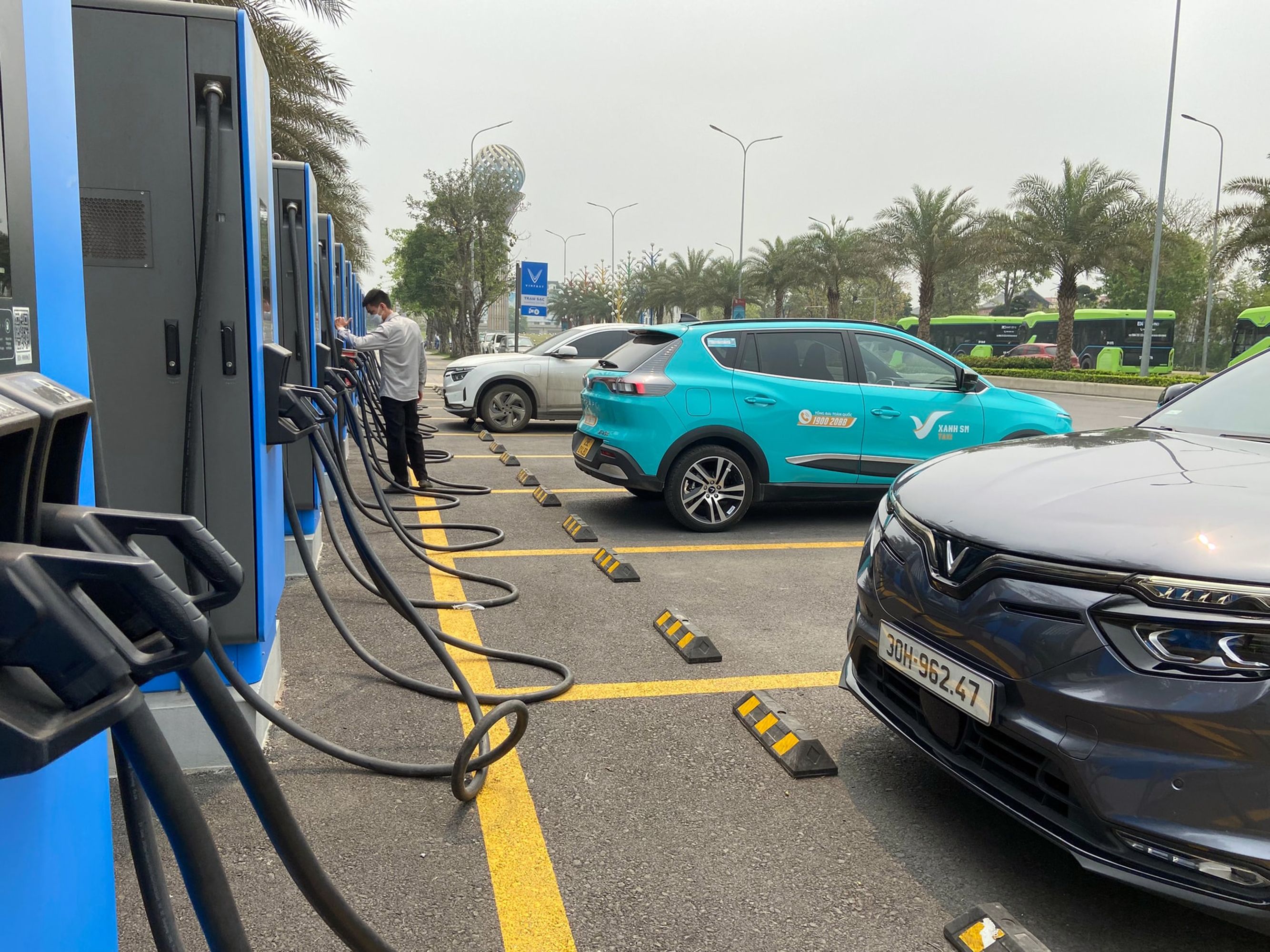 Một khu vực trạm sạc xe điện tại Hà Nội.