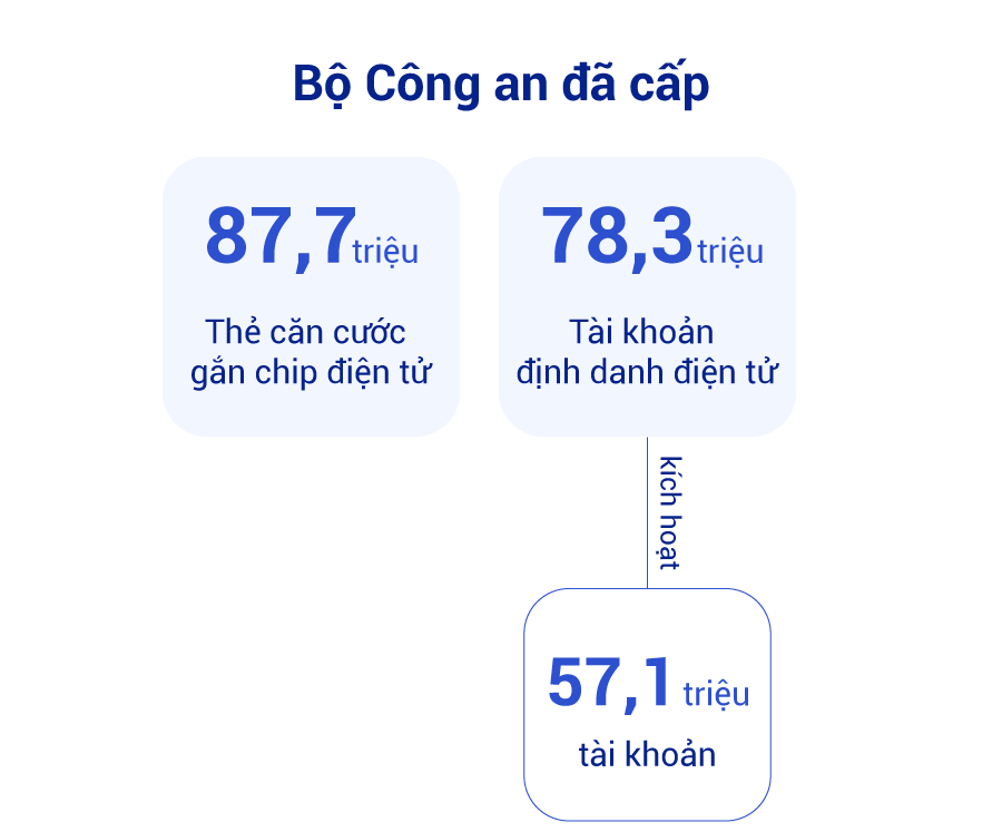 Theo lãnh đạo Bộ Công an, đến nay, Bộ đã cấp 87,7 triệu thẻ căn cước gắn chip điện tử cho công dân; hơn 78,3 triệu tài khoản định danh điện tử đã được cấp và kích hoạt trên 57,1 triệu tài khoản. Thông qua việc kết nối, chia sẻ, tích hợp các loại giấy tờ, người dân được hưởng nhiều tiện lợi, đây là nền tảng để thực hiện các tiện ích công dân số trong thời gian tới.