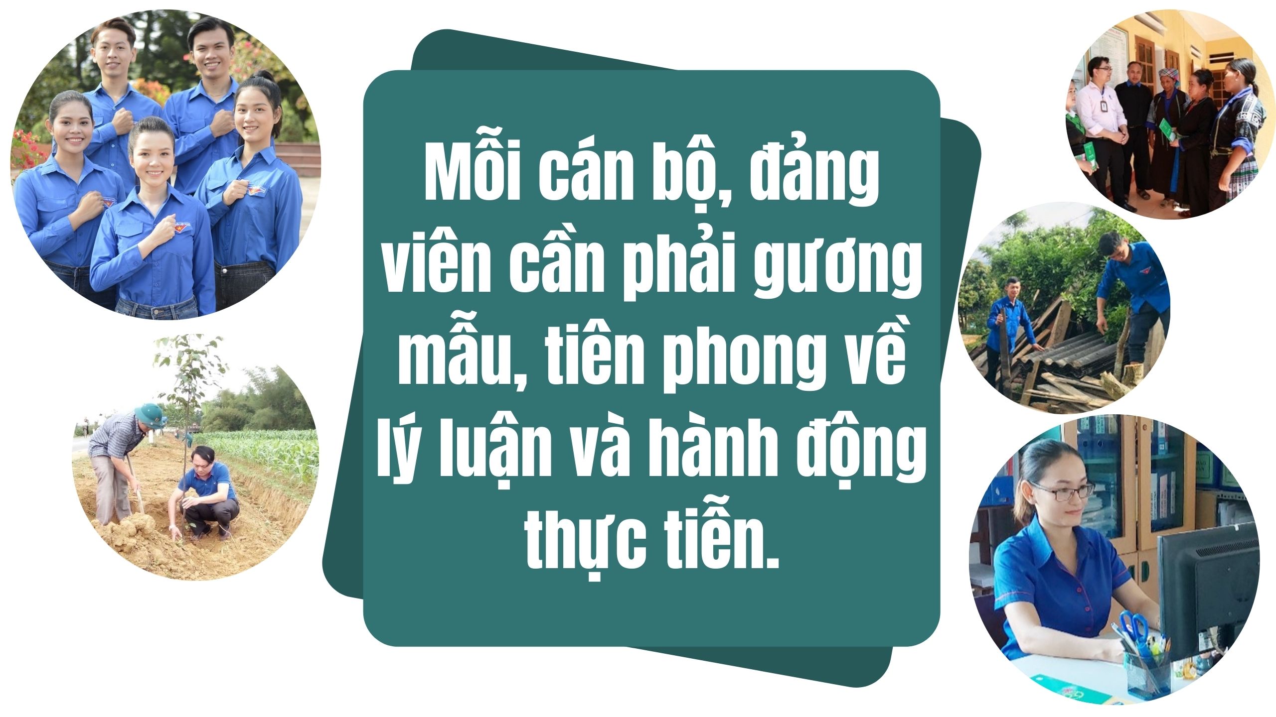Theo Chủ tịch Hồ Chí Minh, nếu đội ngũ đảng viên của Đảng không đi tiên phong, gương mẫu trong đạo đức và hành động cách mạng thì Đảng cũng chỉ còn là một tổ chức lạc hậu, nói suông và lừa phỉnh. Nói một cách giản dị dễ hiểu là “đảng viên đi trước, làng nước theo sau”. Vì vậy, mỗi cán bộ, đảng viên cần phải gương mẫu, tiên phong về lý luận và hành động thực tiễn.