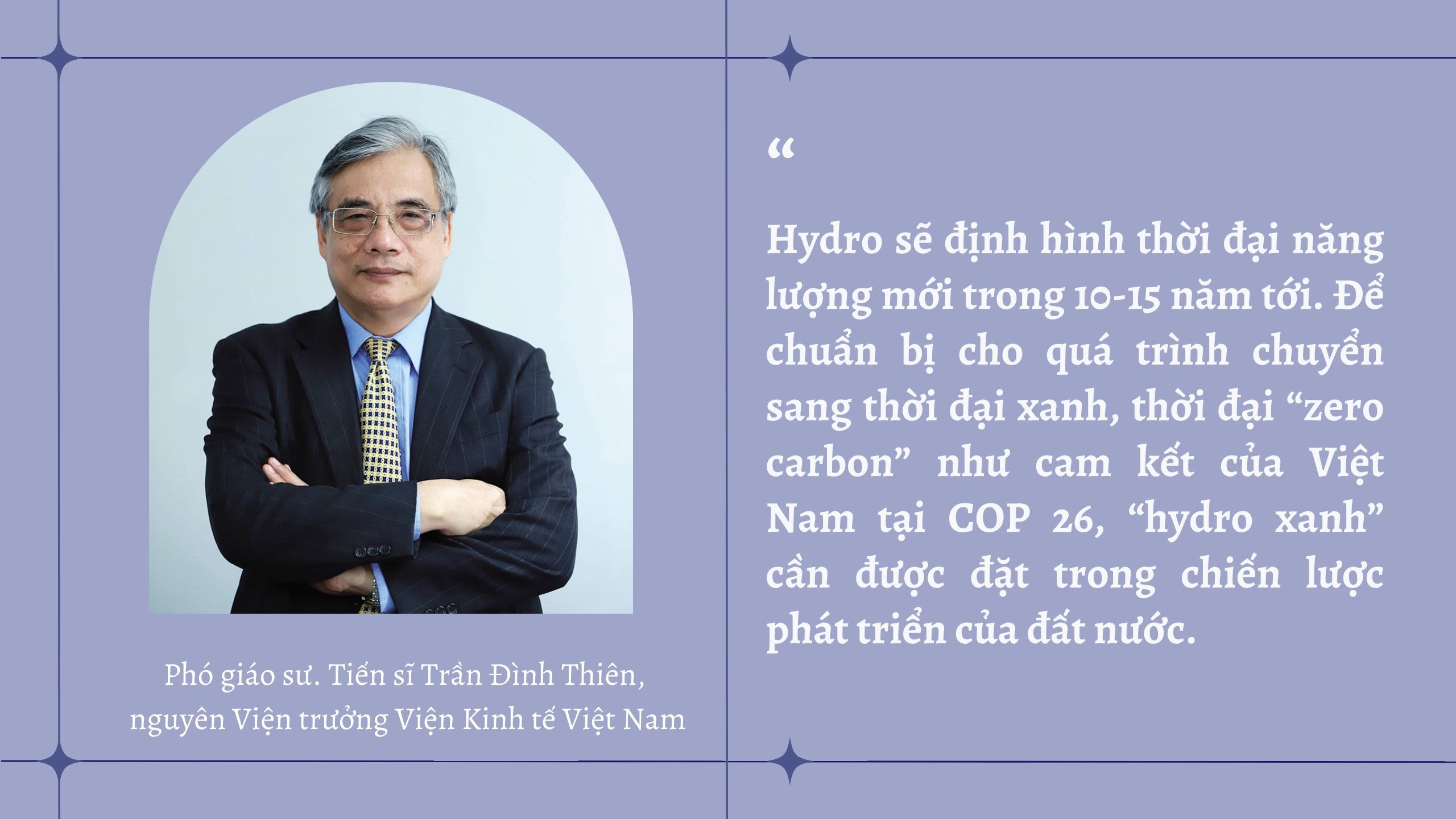 Ở tầm nhìn chiến lược, nguyên Viện trưởng Viện Kinh tế Việt Nam Trần Đình Thiên cho rằng, đã đến lúc Việt Nam cần phát động một cuộc cách mạng năng lượng mới. Nhiều nghiên cứu chỉ ra, trong tương lai không xa, năng lượng hydro sẽ dần thay thế các nguồn năng lượng hóa thạch đang dần cạn kiệt để hình thành “nền kinh tế hydro”. Không những là nguồn nhiên liệu sạch, hydro còn là nguyên liệu quan trọng cho nhiều lĩnh vực hoạt động của một nền kinh tế phát thải carbon thấp.