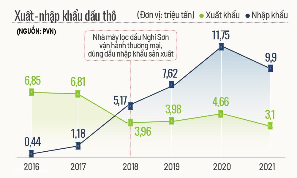 Theo đó, kể cả khi Nhà máy Lọc dầu Nghi Sơn không tự ý cắt giảm công suất, cộng thêm sản lượng khoảng 7 triệu tấn/năm của Nhà máy Lọc dầu Dung Quất, Việt Nam mới tự sản xuất được khoảng 2/3 tổng nhu cầu tiêu thụ xăng dầu trong nước và phần còn lại vẫn phải bù bằng nguồn nhập khẩu. Chính phủ vừa qua đã chỉ đạo Tập đoàn Dầu khí Việt Nam (PVN) nhanh chóng triển khai nghiên cứu, đầu tư xây dựng Tổ hợp dự án lọc hóa dầu mới tại Khu công nghiệp Dầu khí Long Sơn (Bà Rịa-Vũng Tàu) với kỳ vọng có thêm 10 triệu tấn xăng dầu/năm để chủ động hoàn toàn nguồn cung trong nước. Thế nhưng không ít chuyên gia lại cho rằng, cần xem xét kỹ hơn kế hoạch này. Vì hiện khai thác dầu thô trong nước chỉ đáp ứng được một phần cho sản xuất xăng dầu nội địa và sản lượng ngày càng giảm, nên dù xây thêm nhà máy lọc dầu, Việt Nam vẫn phải lệ thuộc vào nguồn dầu thô nhập khẩu.