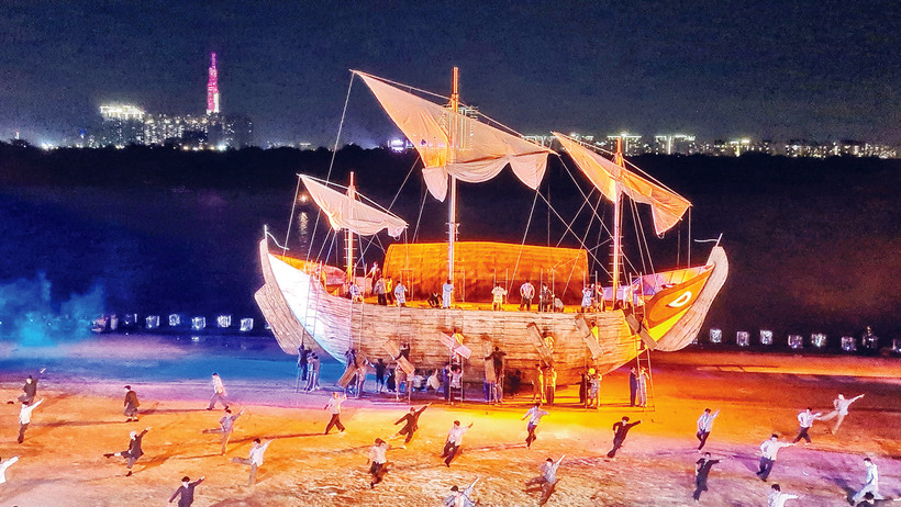 Tiết mục trong chương trình nghệ thuật “Chuyến tàu huyền thoại” tại đêm khai mạc lễ hội sông nước.