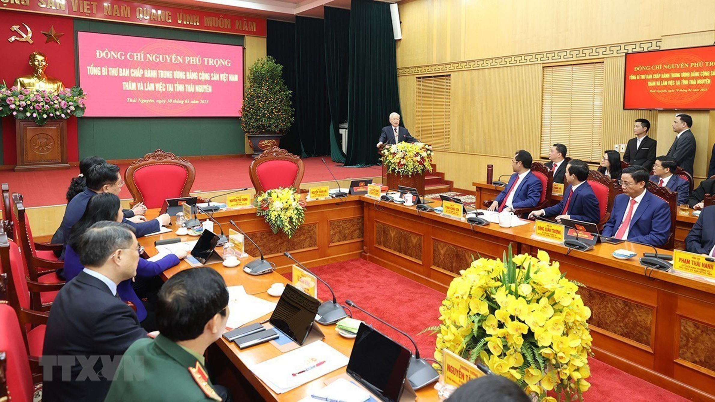 Ngày 10/1, Tổng Bí thư Nguyễn Phú Trọng về thăm, làm việc, chúc Tết Đảng bộ, Chính quyền và nhân dân tỉnh Thái Nguyên. Báo Nhân Dân trân trọng giới thiệu toàn văn bài phát biểu của Tổng Bí thư Nguyễn Phú Trọng tại buổi làm việc.