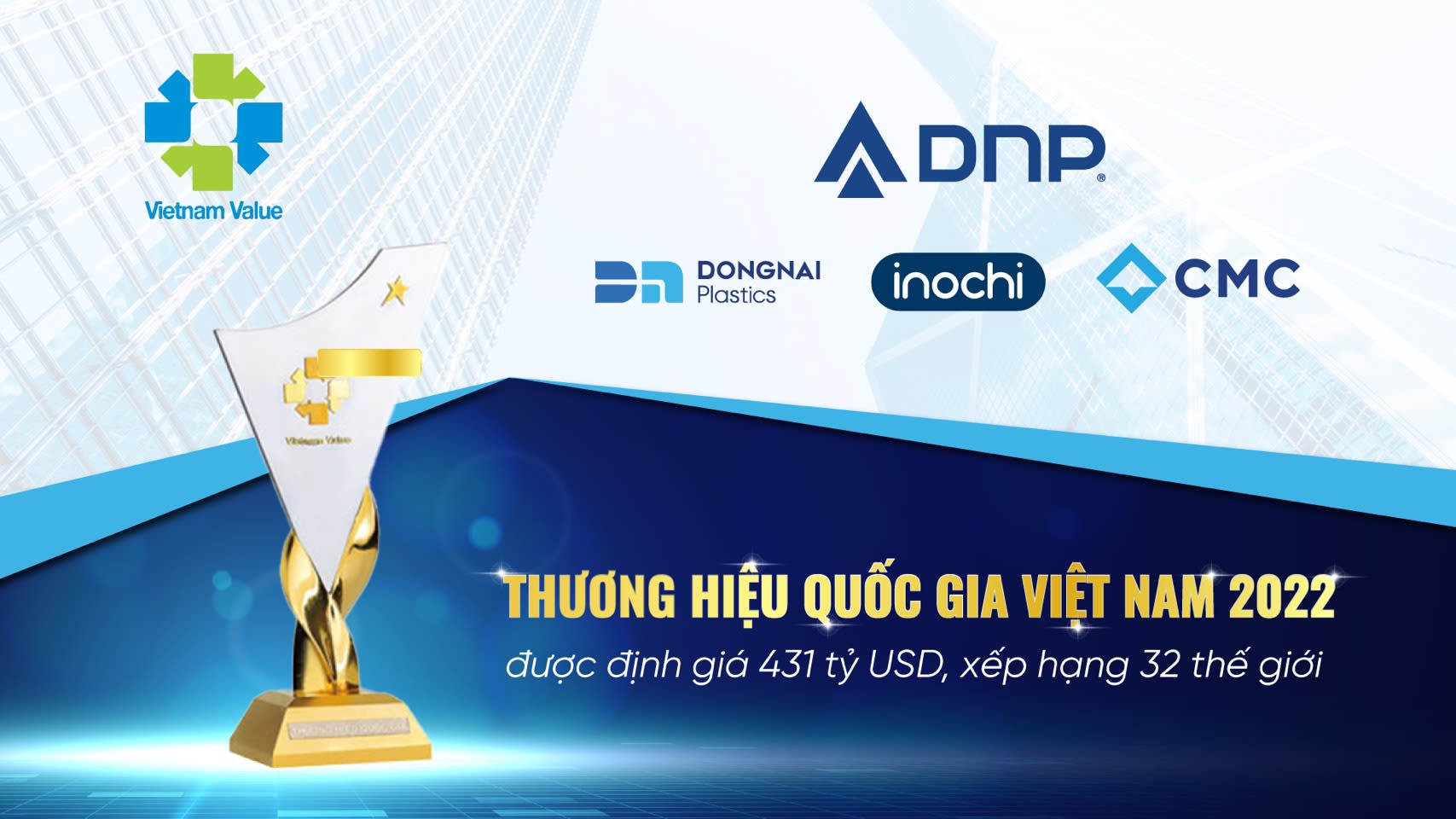 Vinh dự nằm trong số 172 doanh nghiệp được công nhận Thương hiệu Quốc gia năm 2022, DNP cùng lúc có 3 sản phẩm thuộc lĩnh vực trụ cột: Vật tư ngành nước (Nhựa Đồng Nai), gạch ngói xây dựng (CMC), sản phẩm gia dụng tiện ích (Inochi/thuộc Tân Phú Việt Nam) được vinh danh.