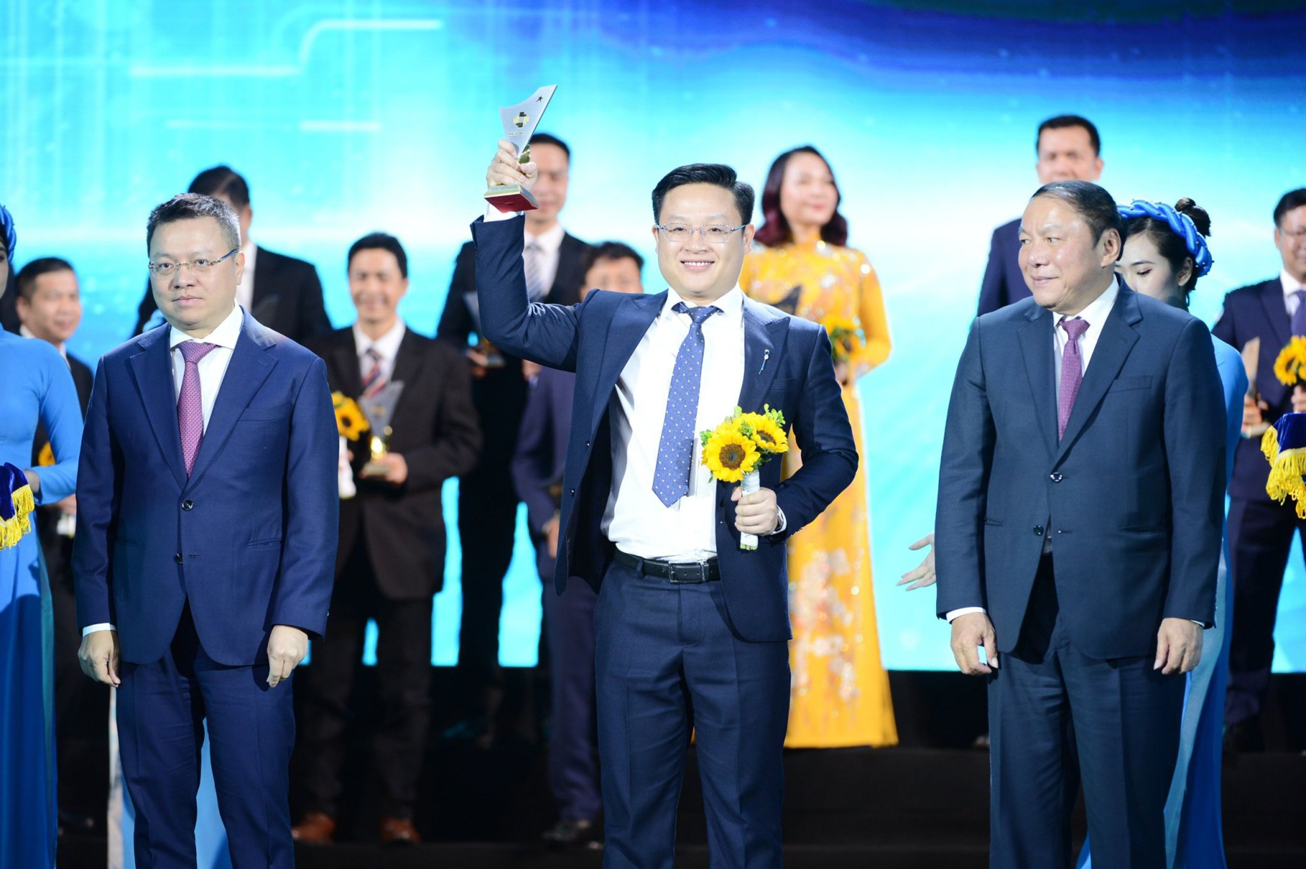 Đồng chí Lê Quốc Minh, Ủy viên Trung ương Đảng, Tổng Biên tập Báo Nhân Dân, Phó Trưởng Ban Tuyên giáo Trung ương, Chủ tịch Hội Nhà báo Việt Nam và đồng chí Nguyễn Văn Hùng, Ủy viên Trung ương Đảng, Bộ trưởng Văn hóa, Thể thao và Du lịch trao biểu trưng cho đại diện Công ty CP DNP Holding đạt Thương hiệu quốc gia năm 2022.
