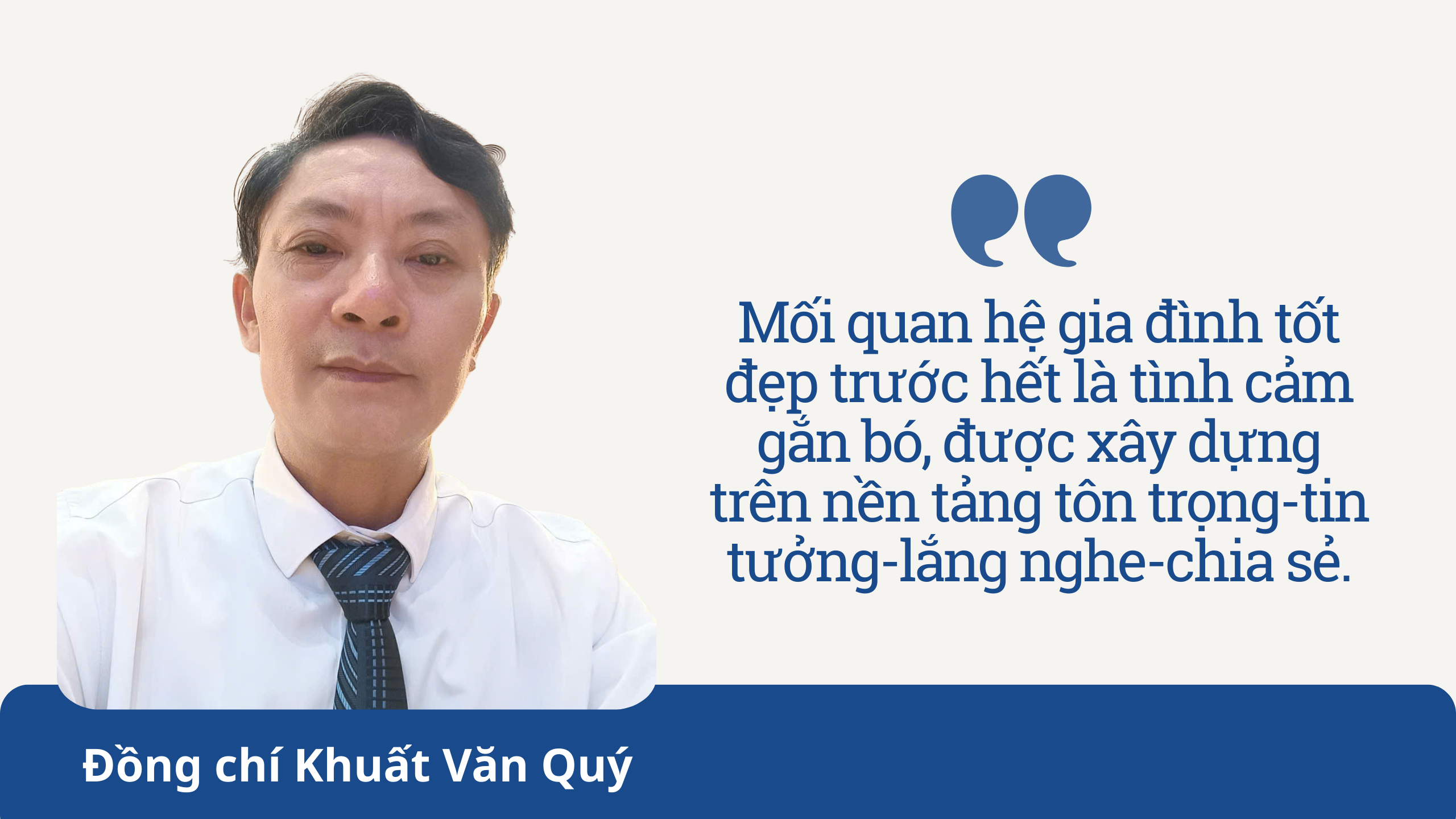 Đồng chí Khuất Văn Quý: Mối quan hệ gia đình tốt đẹp trước hết là tình cảm gắn bó, được xây dựng trên nền tảng tôn trọng-tin tưởng-lắng nghe-chia sẻ. Đó là không gian an toàn để mỗi người bày tỏ suy nghĩ, cảm xúc mà không sợ bị phán xét.