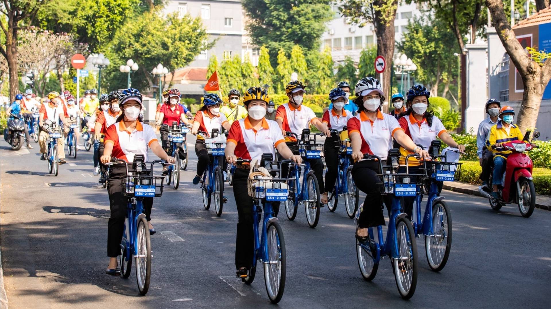 Người dân trải nghiệm xe đạp công cộng tại TP Hồ Chí Minh. (Ảnh: Tập đoàn Trí Nam)