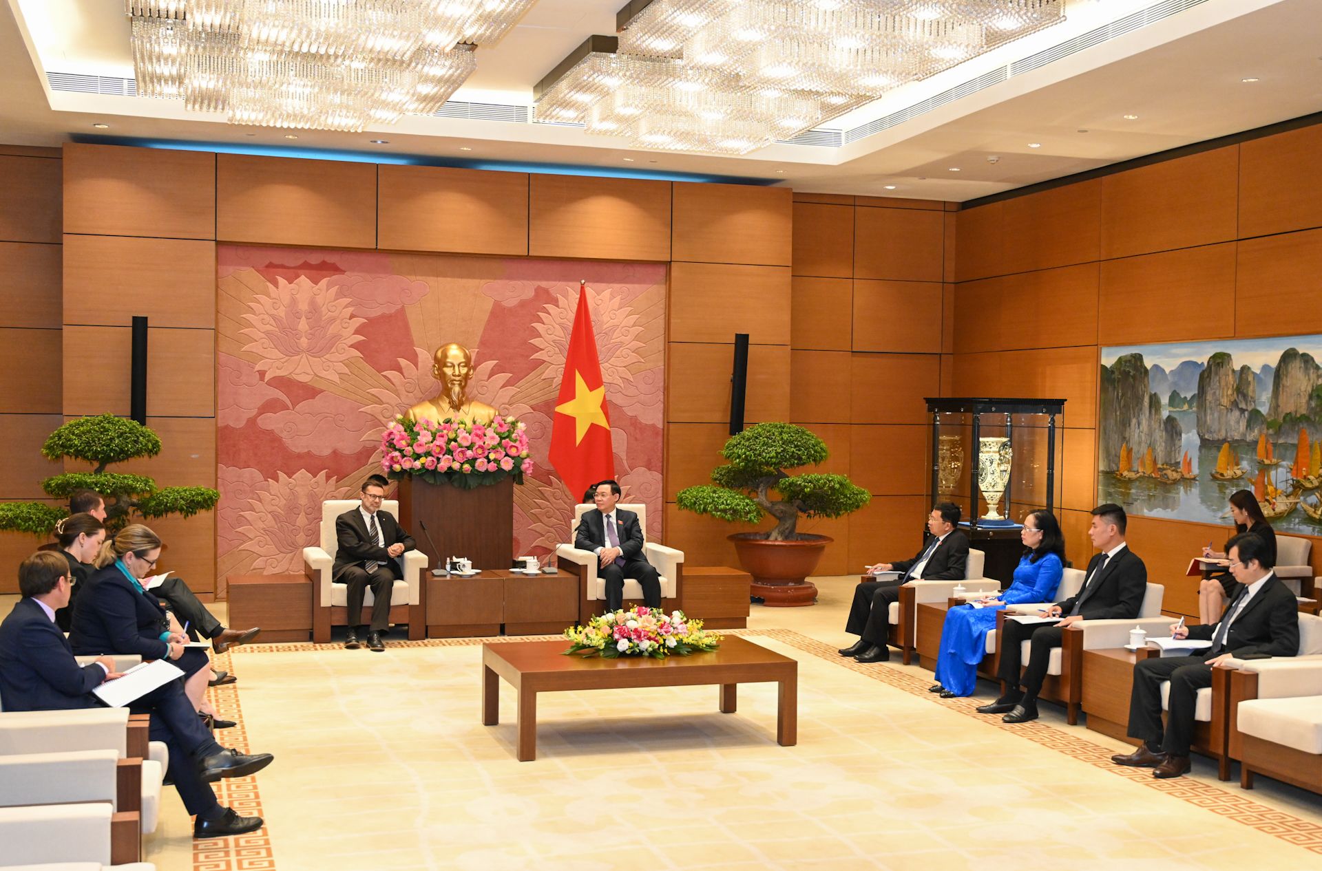 Chủ tịch Quốc hội Vương Đình Huệ tiếp Đại sứ Australia Andrew Goledzinowski, ngày 18/11/2022