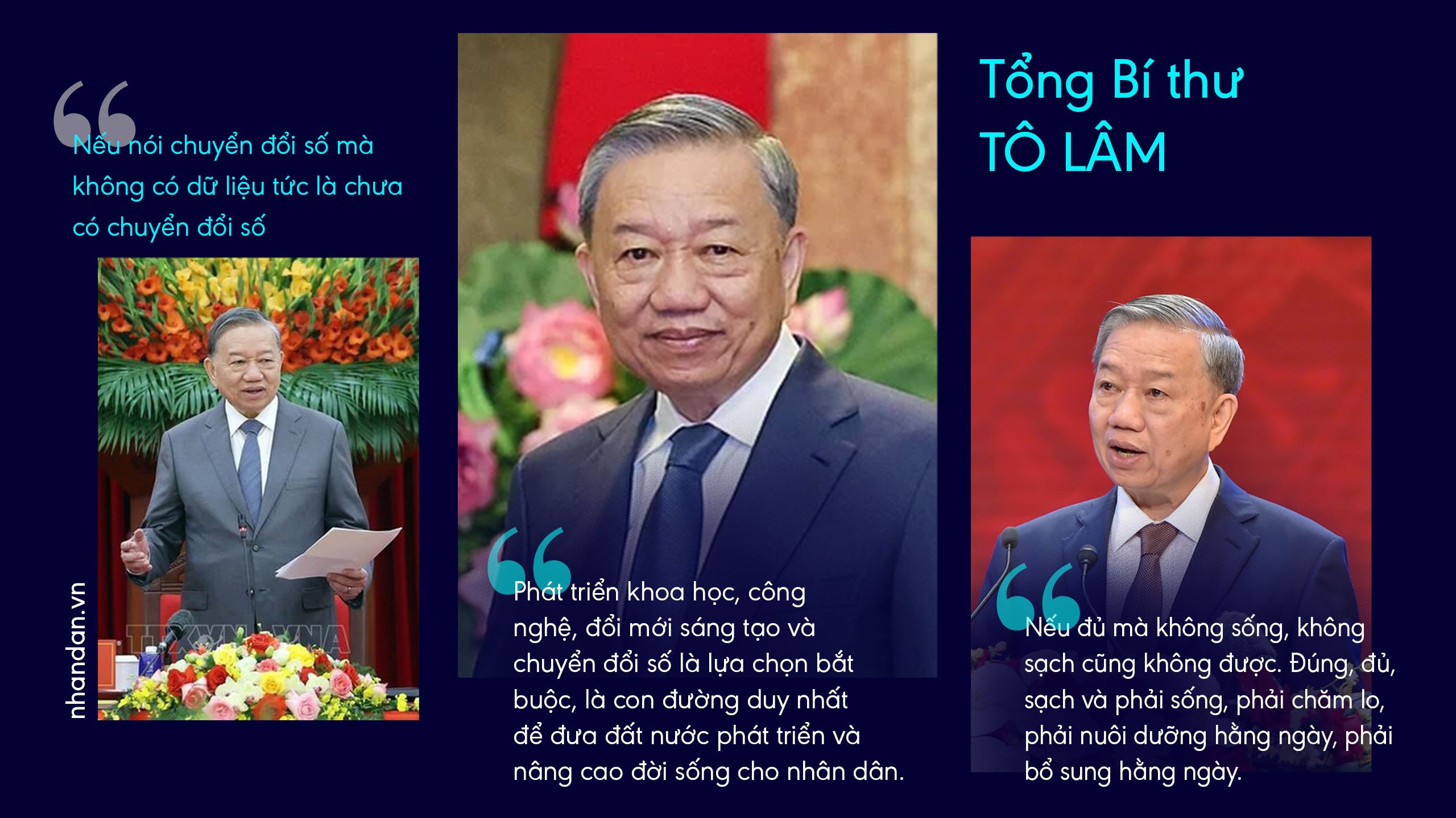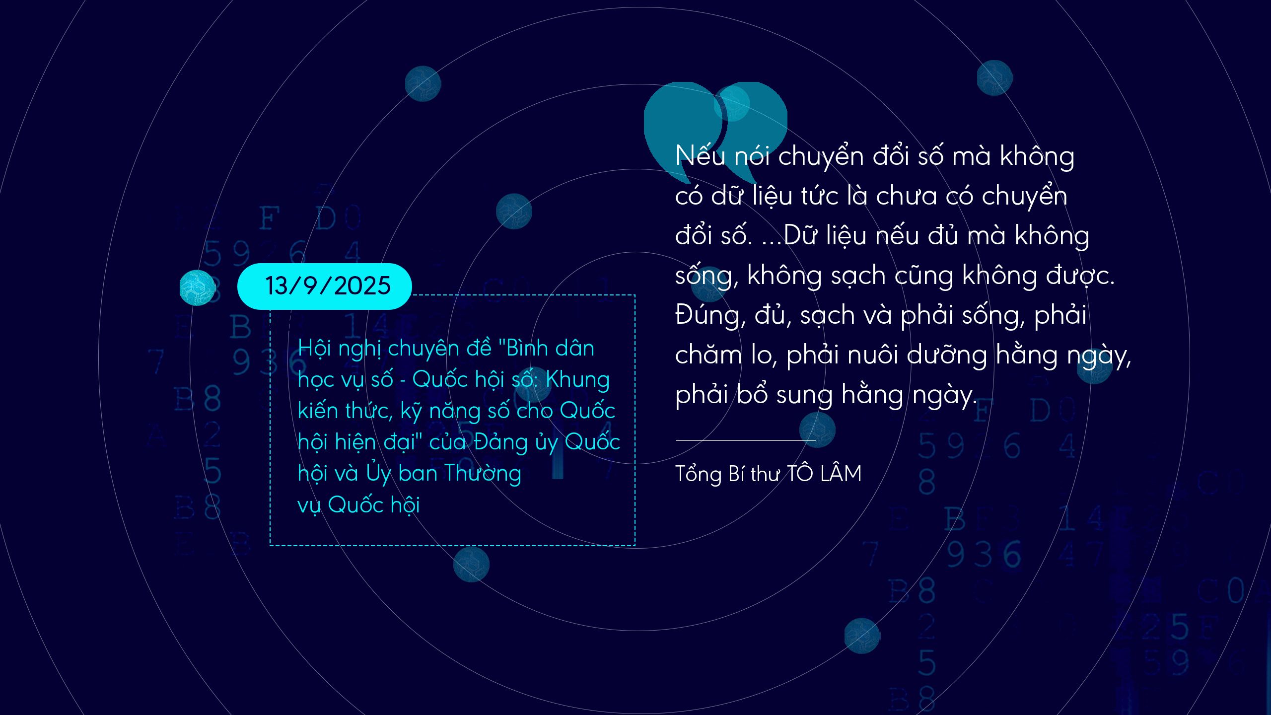 Ngày 13/9, tại Hội nghị chuyên đề "Bình dân học vụ số - Quốc hội số: Khung kiến thức, kỹ năng số cho Quốc hội hiện đại" của Đảng ủy Quốc hội và Ủy ban Thường vụ Quốc hội, Tổng Bí thư Tô Lâm một lần nữa đề cập đến vấn đề dữ liệu. Đồng chí chỉ rõ: “Nếu nói chuyển đổi số mà không có dữ liệu tức là chưa có chuyển đổi số”.