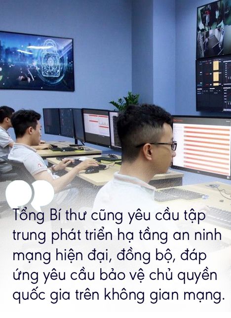 Tổng Bí thư cũng yêu cầu tập trung phát triển hạ tầng an ninh mạng hiện đại, đồng bộ, đáp ứng yêu cầu bảo vệ chủ quyền quốc gia trên không gian mạng.
