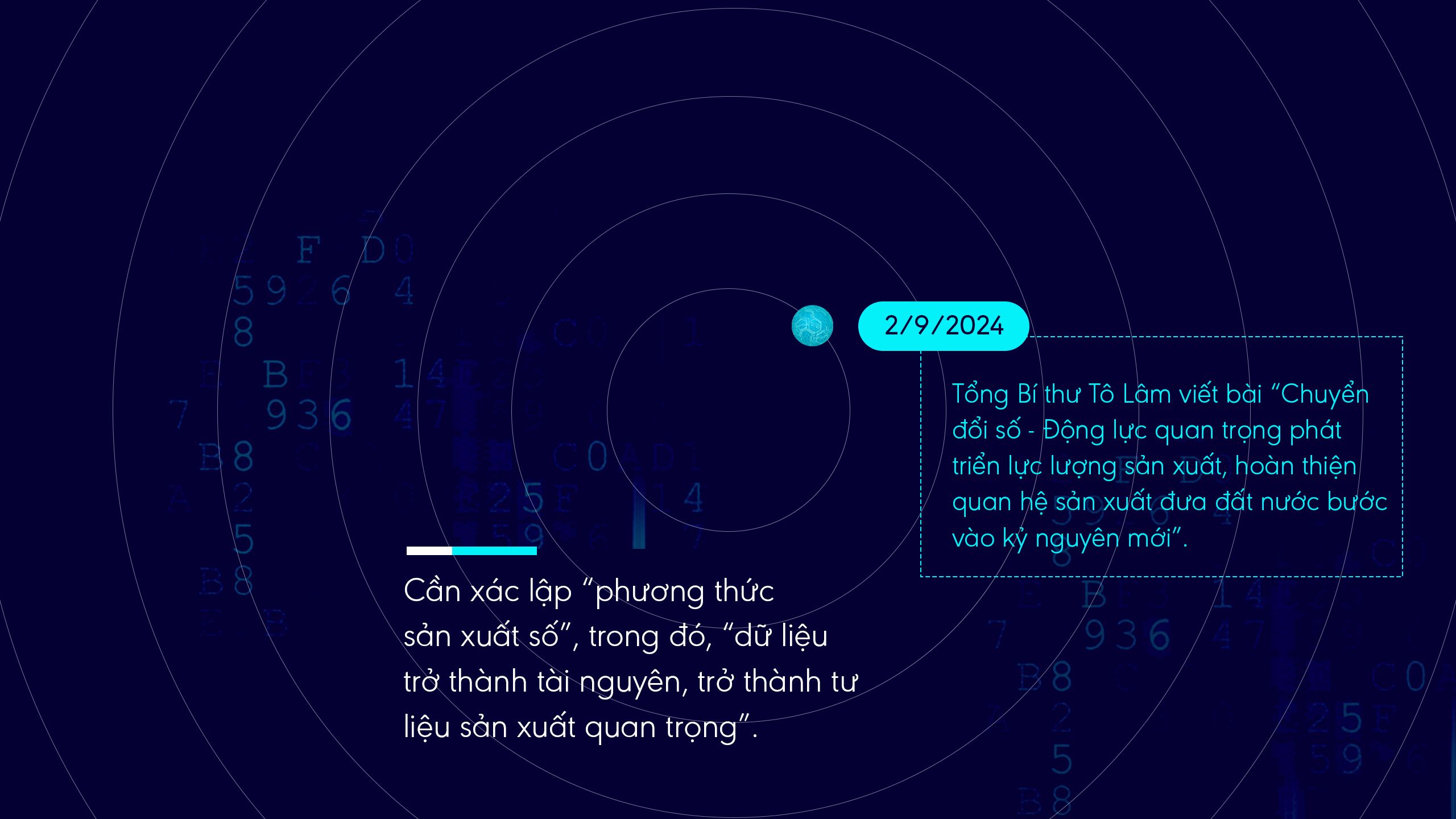 Ngày 2/9/2024, trong lúc cả nước kỷ niệm 79 năm giành được độc lập, hướng đến dấu mốc 80 năm thành lập nước, đồng loạt trên các tờ báo lớn đã đăng tải bài viết của Tổng Bí thư Tô Lâm mang tên “Chuyển đổi số - Động lực quan trọng phát triển lực lượng sản xuất, hoàn thiện quan hệ sản xuất đưa đất nước bước vào kỷ nguyên mới”.