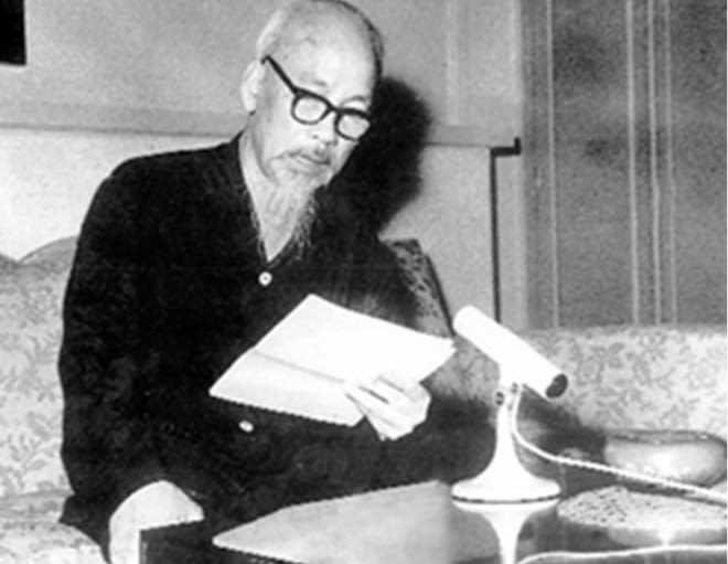 Chủ tịch Hồ Chí Minh đọc Lời kêu gọi đồng bào và chiến sĩ cả nước quyết tâm đánh thắng giặc Mỹ xâm lược. Người khẳng định: “Không có gì quý hơn độc lập tự do”. Hà Nội, ngày 17/7/1966. Ảnh: Tư liệu/TTXVN phát