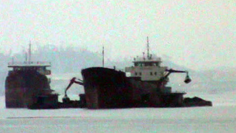 Sang mạn giữa hai tàu 500 tấn và tàu 3.000 tấn lúc 17 giờ 30 phút, ngày 24-11-2013. (Ảnh trích từ băng tư liệu)