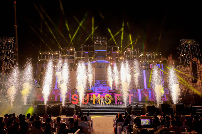 Tiết mục được trình diễn bởi 70 nghệ sĩ quốc tế trên sân khấu nhạc nước ấn tượng của show diễn “Kiss The Stars - Nụ hôn giữa ngàn sao” - show trình diễn công nghệ đa phương tiện lớn nhất châu Á với hệ thống ba vòm chiếu liên tục, một trải nghiệm hứa hẹn đưa Thị trấn Hoàng Hôn thành điểm đến mới của thế giới.