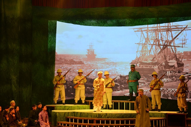 Một cảnh trong vở cải lương "Thầy Ba Đợi".