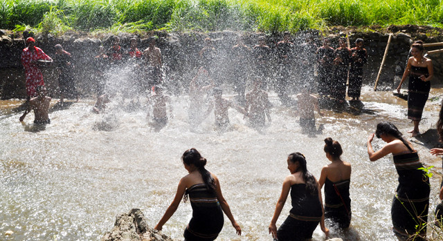Sau khi nghi thức cúng, chàng trai và cô gái dân tộc sẽ cùng tham gia lễ hội té nước và tắm nhằm cầu mong điều tốt lành