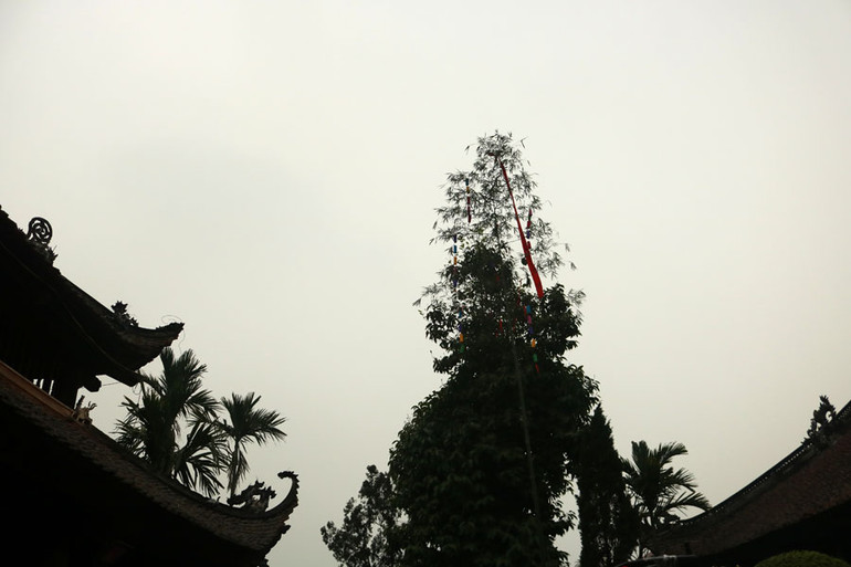 Lễ dựng cây nêu ngày Tết được tiến hành vào ngày 23 tháng Chạp, ngày ông Công ông Táo lên trời. Một cây tre già được chọn, với các lóng tre và cành lá để nguyên, trên đó treo cờ phướn, đèn lồng vuông, khánh đất, chuông đất hoặc chuông gió để phát ra tiếng, treo cùng với lá bùa. Trước lễ dựng nêu (còn gọi là thượng nêu), người dân làng đào một hố sâu trước sân đình, chuẩn bị sẵn vôi bột và vẽ hình cung tên hướng về phía đông (theo truyền thuyết là quỷ sau cuộc chiến với người thì bị Phật đày ra biển Đông).