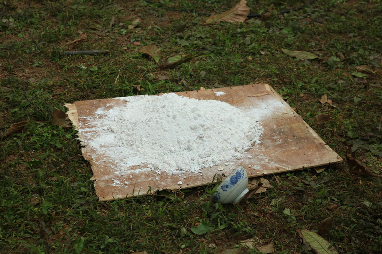 Chỉnh lại cây nêu cho khớp với hố đất đã được đào sẵn.