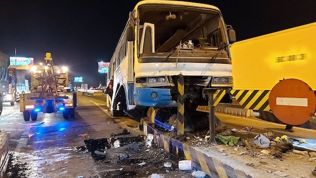 *Xe chở công nhân lao vào trạm thu phí cao tốc TP Hồ Chí Minh – Trung Lương