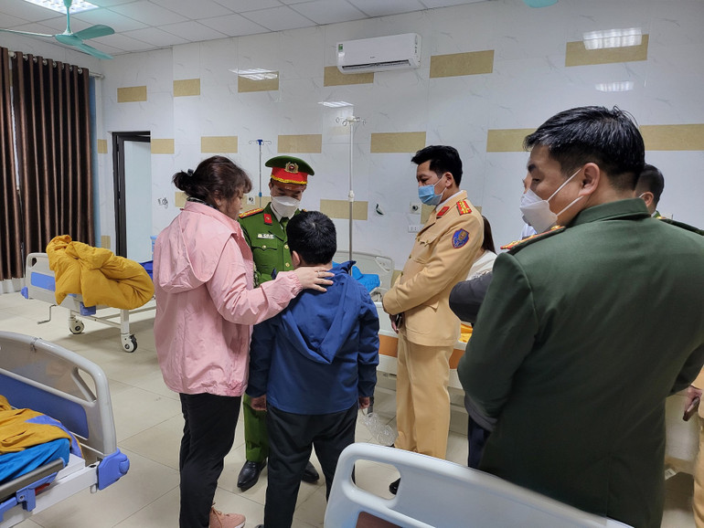 Hình ảnh lực lượng chức năng thăm hỏi các nạn nhân tại cơ sở y tế:
