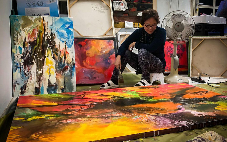 Bùi Mai Hiên cũng là nữ họa sĩ được nhiều người nước ngoài tìm đến tư gia để mua tranh. Điều đặc biệt, hình tượng người phụ nữ trong tranh của chị thường xuất hiện trong những giông bão cuộc đời…