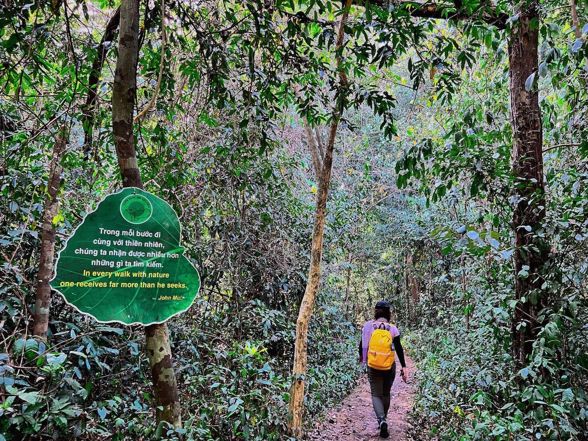 Nhiều nơi trong rừng, Ban quản lý đặt những tấm biển ghi danh ngôn về tình yêu thiên nhiên, ý thức bảo vệ rừng.