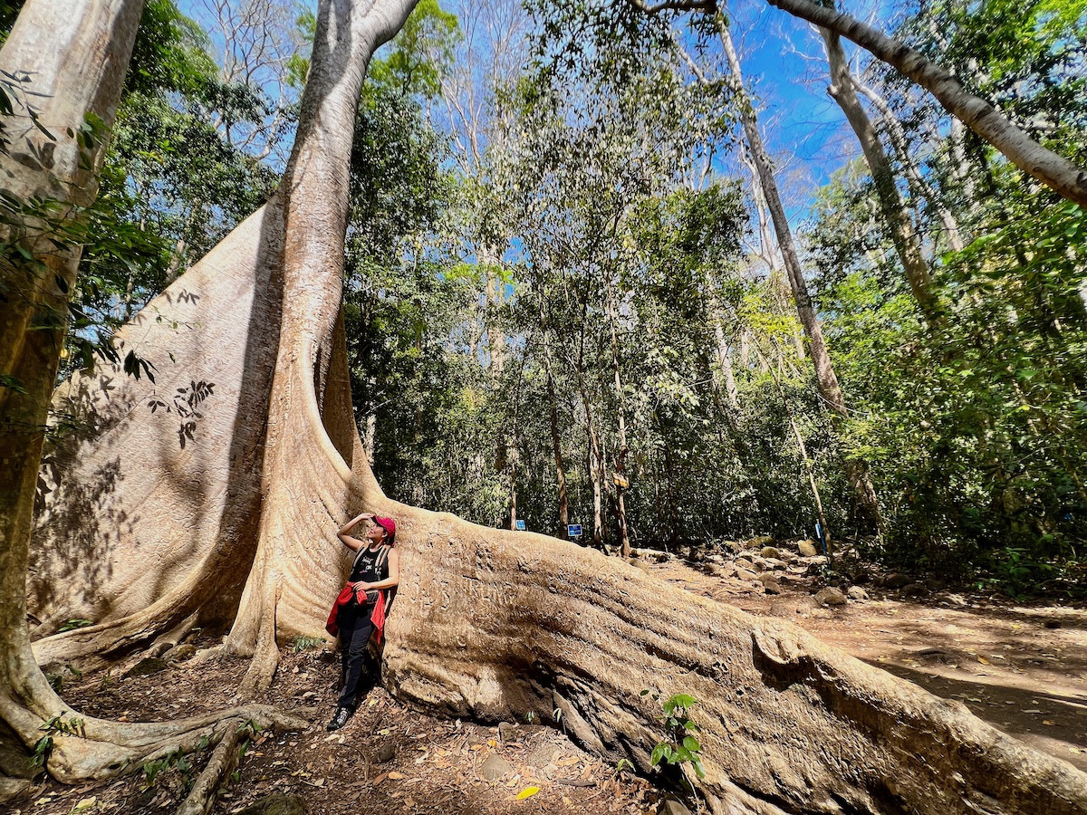 Cây tung cổ thụ hơn 400 năm tuổi với chiều cao hơn 30m, bộ rễ dài hơn 20m, ước chừng 20 người đứng quanh mới bao hết chu vi. Chỉ cách cổng Vườn quốc gia khoảng 800m, đây là điểm check-in của hầu hết du khách đến với Nam Cát Tiên.
