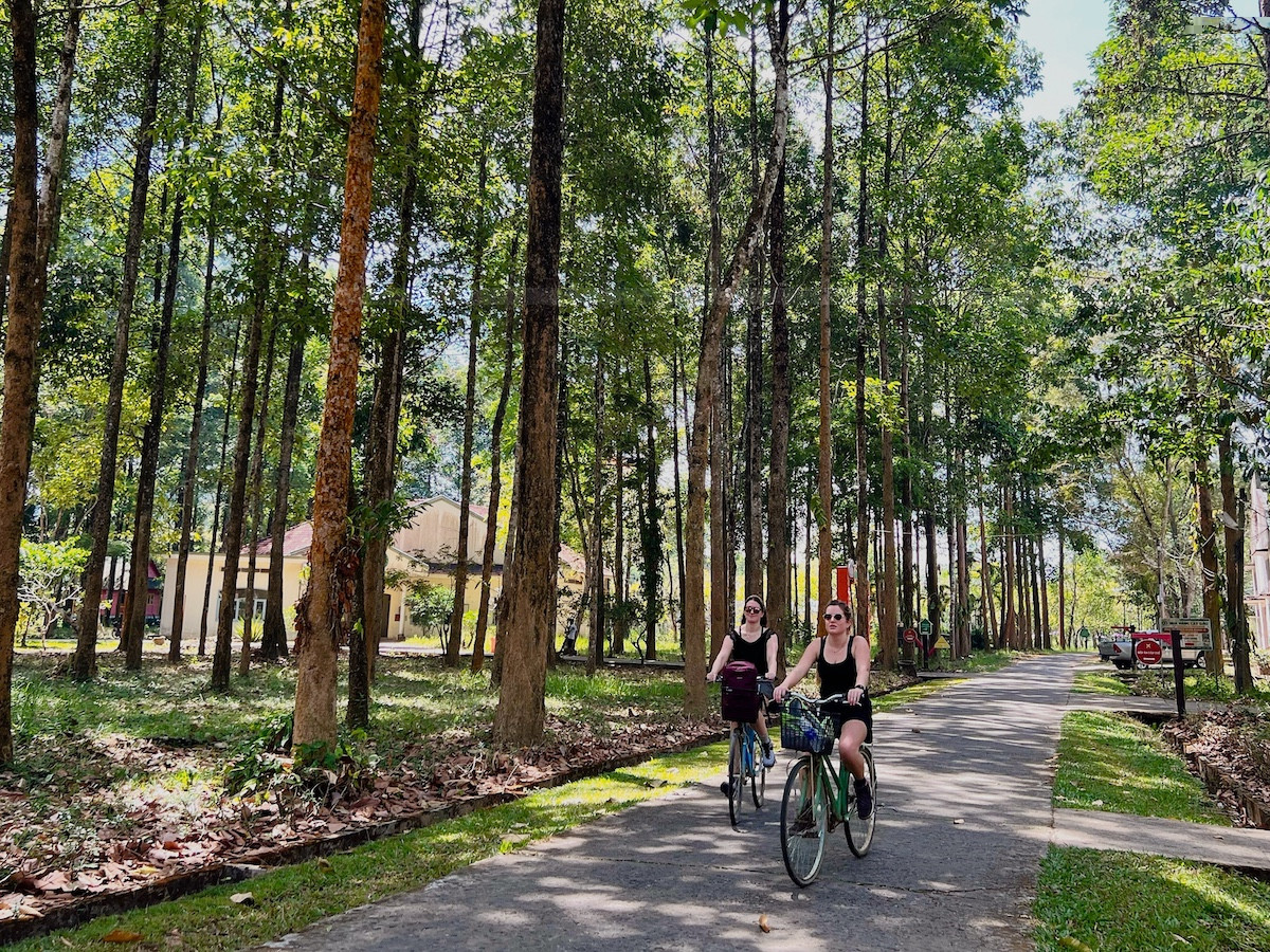 Để khám phá rừng Nam Cát Tiên, nhiều du khách chọn thuê xe đạp kết hợp với đi bộ.