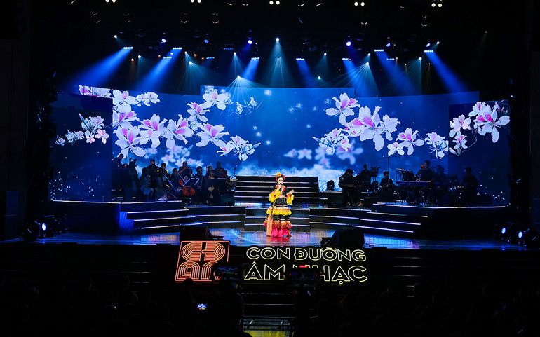 Đêm “Con đường âm nhạc” của Tân Nhàn gắn liền với các bộ trang phục mà nhà thiết kế Lasen Vũ đã dày công chuẩn bị, để phù hợp với tinh thần của từng tiết mục.