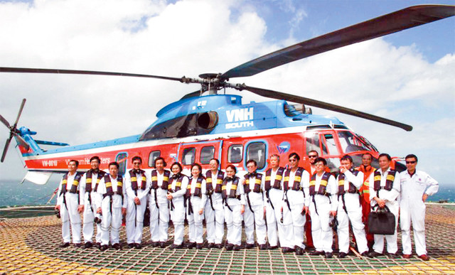 Máy bay trực thăng hạ cánh xuống giàn khoan Thỏ Trắng 2.