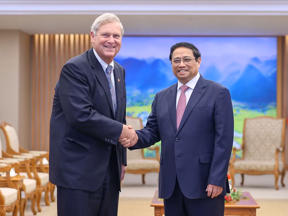 Thủ tướng cũng đề nghị Bộ Nông nghiệp Hoa Kỳ tăng cường hợp tác, hỗ trợ Việt Nam trong chuyển đổi xanh, thích ứng biến đổi khí hậu, chuyển giao công nghệ và chuyển đổi số nông nghiệp; kiểm soát dịch bệnh, nghiên cứu, sản xuất vaccine, thuốc bảo vệ thực vật, thức ăn chăn nuôi; tăng học bổng, đào tạo nhân lực cho ngành nông nghiệp.