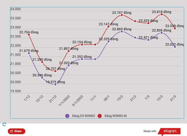 Theo Nghị định 95/NĐ-CP sửa đổi, bổ sung một số điều của Nghị định 83/2014 về kinh doanh xăng, dầu có hiệu lực từ ngày 2/1/2022, giá xăng dầu được điều chỉnh mỗi tháng 3 lần vào các ngày: 1, 11 và ngày 21 hằng tháng (tức là 10 ngày một lần, thay vì 15 ngày một lần).
