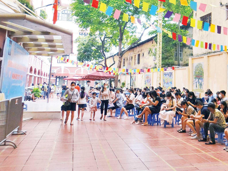 Những ngày qua, quận Hai Bà Trưng triển khai tiêm vắc-xin phòng Covid-19 liều nhắc lại (mũi 3) cho trẻ em từ 5 đến 17 tuổi. Tại các điểm tiêm, học sinh được lập danh sách và mời ra tiêm theo trường và theo lớp vào các khung giờ khác nhau, mỗi học sinh đều có cha mẹ hoặc người giám hộ đi cùng. Quy trình tiêm được bố trí một chiều, phân luồng rõ ràng, cơ sở hạ tầng bảo đảm đáp ứng yêu cầu vật chất phục vụ tại điểm tiêm.