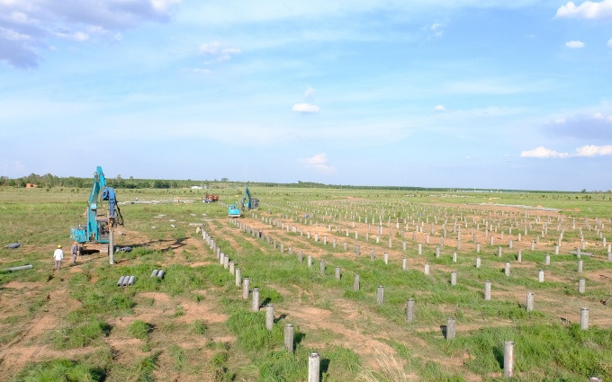 Một vùng rộng lớn đã ép cọc xong của cụm dự án ĐMT Lộc Ninh.
