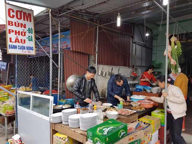 Hàng quán ăn uống trong chợ tất bật phục vụ khách trưa 23-2.