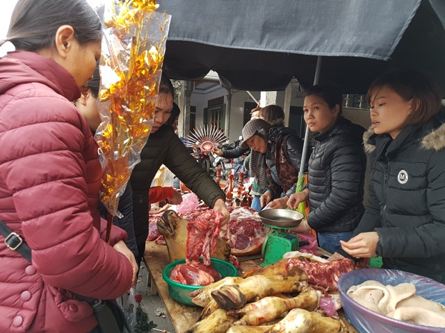 Thịt bò, thịt bê là “đặc sản” chợ Viềng. Giá bán dao động từ 230-250 nghìn đồng/kg. Một số quầy hàng làm thịt bò trực tiếp bên vệ đường, bán luôn cho khách.