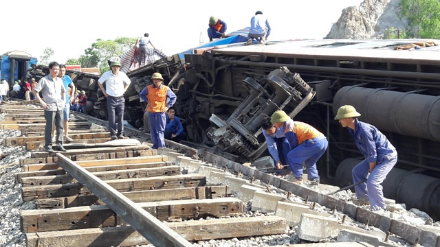 Tổng công ty Đường sắt Việt Nam (VNR) cho biết, vụ tai nạn xảy ra vào lúc 0 giờ 30 phút ngày 24-5 làm lái tàu và phụ lái tàu bị kẹt trong cabin đầu máy 927 đã tử vong, sáu hành khách bị thương đã được đưa đi cấp cứu, và sáu toa xe trật bánh khỏi đường sắt, ô-tô bị hư hỏng