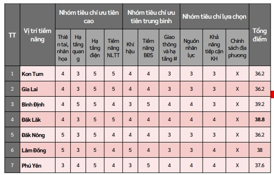 Theo bộ tiêu chí đánh của Viettel, một số tỉnh có mức độ phù hợp cao để xây dựng data center chi tiết như sau: