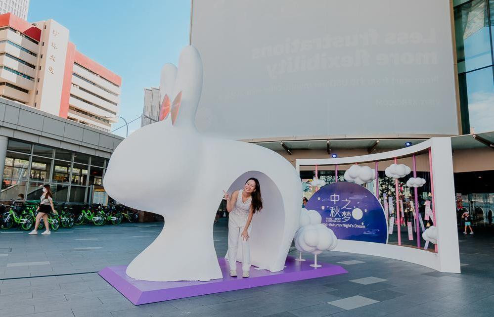 | Khu phố người Hoa những ngày này trở nên rực rỡ trong ánh đèn lồng nhiều màu sắc với những chủ đề đa dạng. Tâm điểm ở khu phố Eu Tong Sen là tác phẩm đèn khổng lồ khắc họa chiếc bánh Trung thu cao 10m, kèm theo xung quanh là những chú thỏ ngọc và những chiếc đèn lồng hình bánh Trung thu bắt mắt. (Ảnh: Straits Times) |