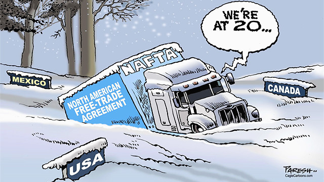 Với lý do NAFTA “cướp” hàng triệu việc làm của lao động Mỹ, gây tổn hại nền kinh tế Mỹ trong khi đem lại nhiều lợi thế cho Canada và Mexico, Tổng thống Donald Trump đề xuất tái đàm phán. Các cuộc thương lượng được khởi động từ tháng 8, đến nay đã trải qua ba vòng đàm phán, nhưng chưa đạt tiến triển nào đáng kể, trừ việc các bên đặt mục tiêu kết thúc đàm phán trước khi bắt đầu năm 2018.